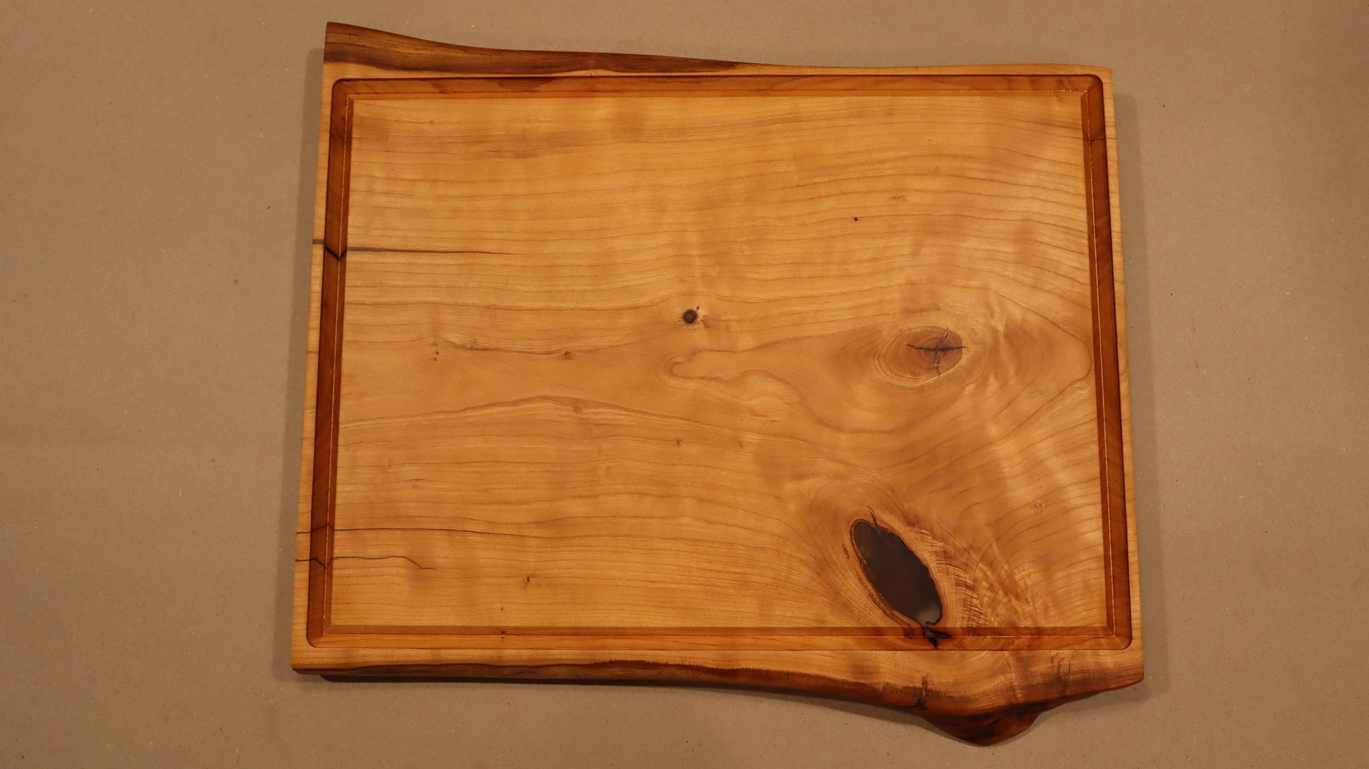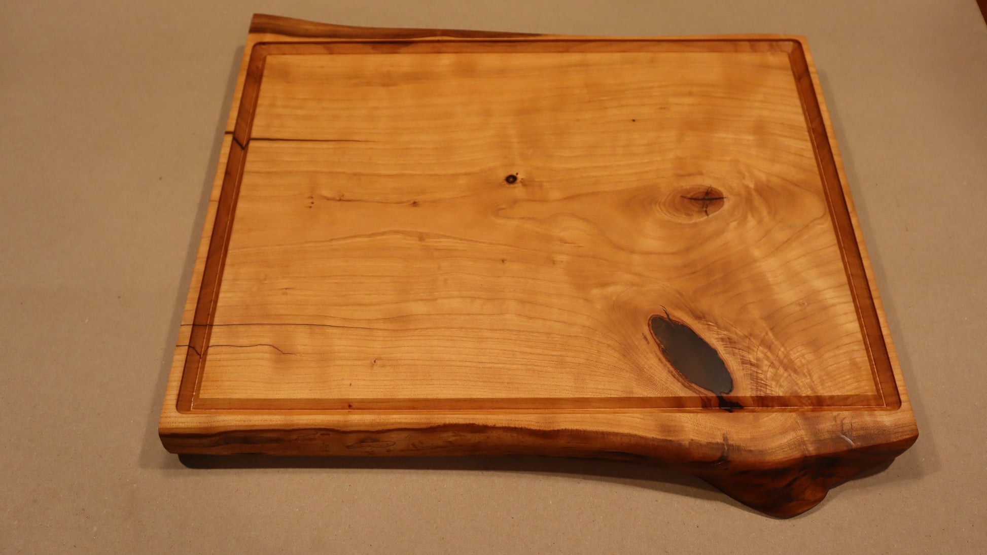 The working area on this board is carved 1/8" below the border, creating a spill resistant cutting slab. Perfect for transferring from the BBQ or extra juicy roasts.